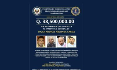 La Embajada estadounidense en Guatemala difundió un cartel oficial para ubicar a Yulan Adonay Archaga Carías, uno de los 10 fugitivos más buscados por el FBI...