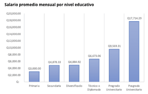 Otro obstáculo identificado es la discrepancia entre las expectativas salariales de los jóvenes y las ofertas reales del mercado. Muchos aspirantes, incluso con educación universitaria, se encuentran con salarios iniciales que no satisfacen sus necesidades económicas. Según el estudio, el salario promedio mensual para graduados de diversificado es de Q4,884.92, mientras que para aquellos con pregrado universitario asciende a Q19,569.