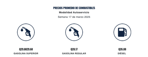 Cabe destacar que, según el Ministerio de Energía y Minas (MEM), los precios de referencia para la semana del 17 de marzo eran más bajos, con la gasolina Regular en Q28.17, la Superior en Q29.88 y el diésel en Q26.08.
