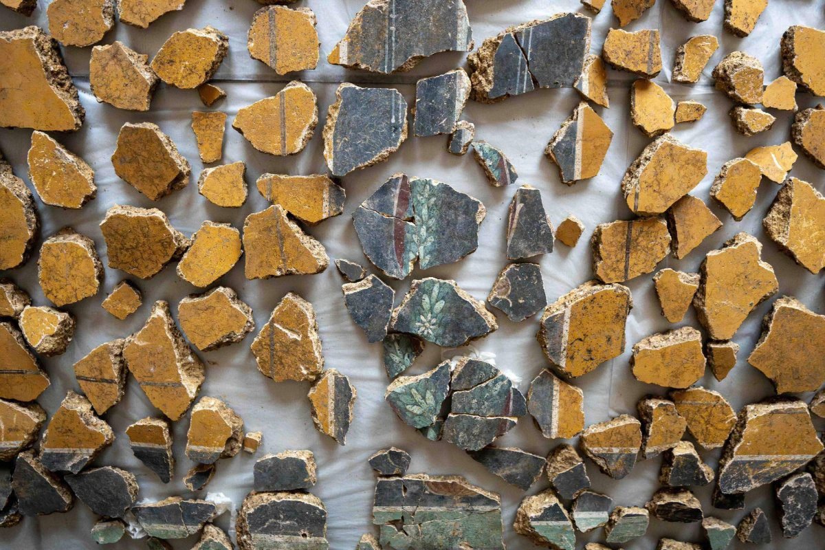 Allí, bajo los cimientos modernos, aparecieron miles de fragmentos de yeso pintado arrojados en un pozo tras la demolición de una villa romana.