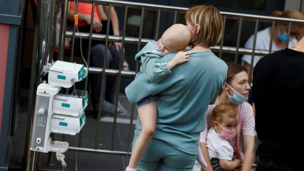 El ministro de Salud, Viktor Lyashko, confirmó que áreas críticas del hospital, como los pabellones de cáncer y cuidados intensivos, sufrieron daños significativos. Fotografías del lugar muestran a niños evacuados, algunos aún conectados a equipos médicos, esperando ser trasladados a zonas seguras.