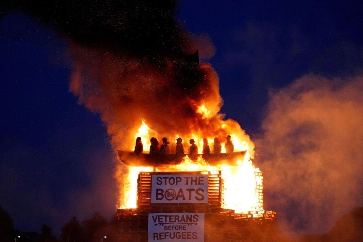 Irlanda del Norte: investigan como crimen de odio la quema de una figura de un bote con migrantes