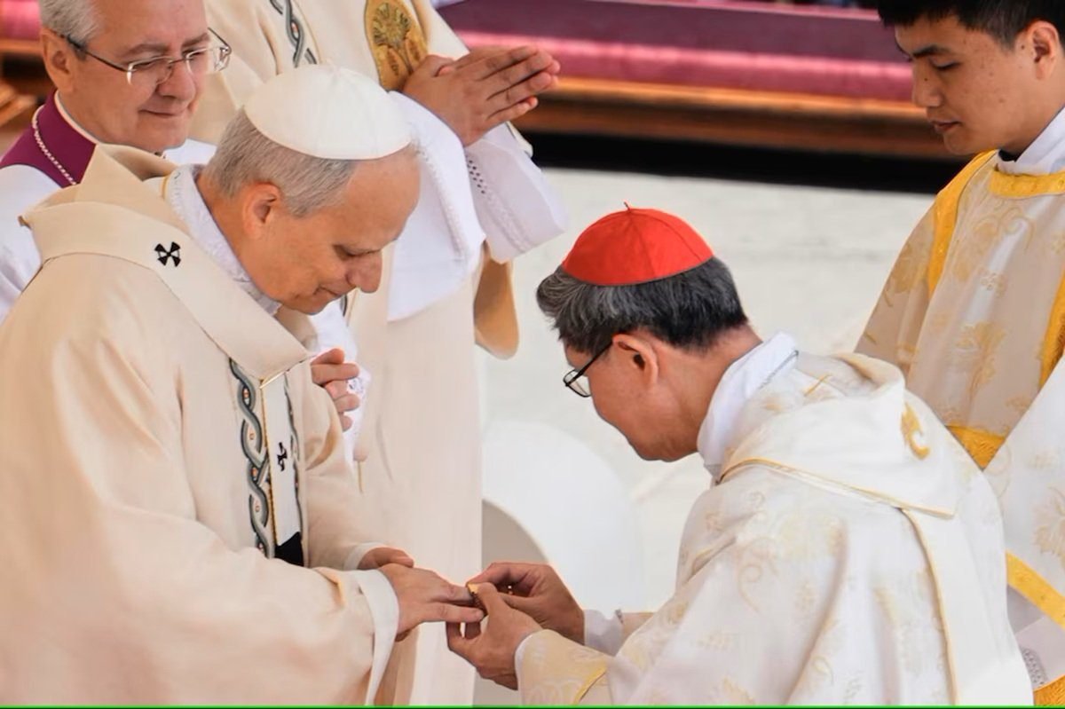 El papa observó detenidamente el anillo y luego juntó sus manos en oración, como si en ese instante tomara plena conciencia del peso de liderar una iglesia con 1,400 millones de fieles.