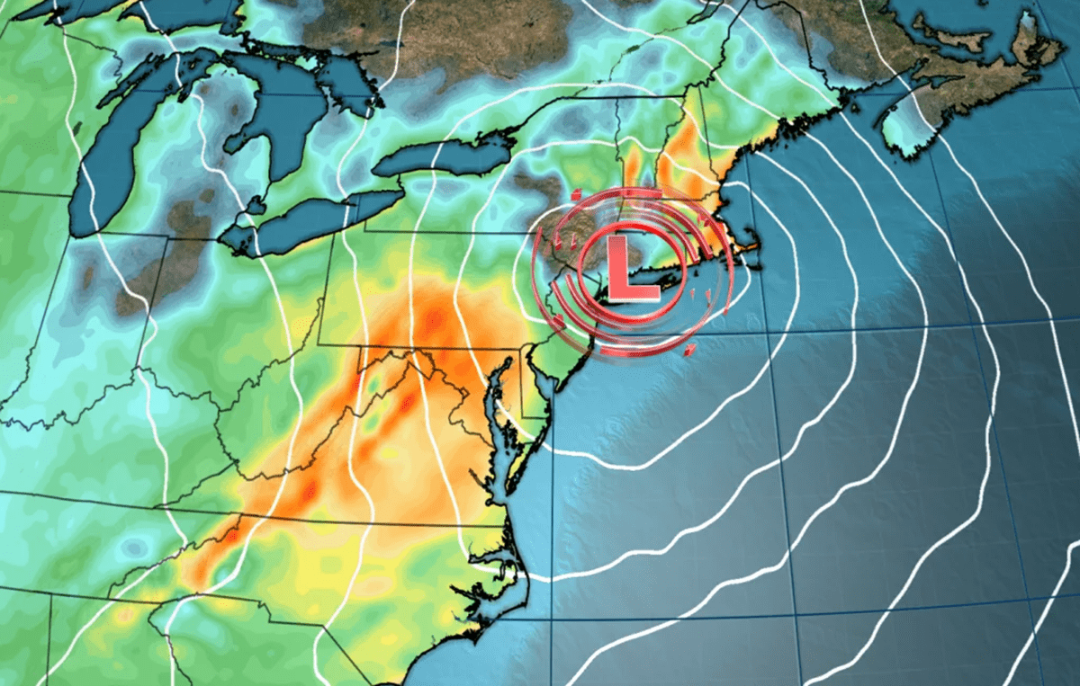Una mezcla de lluvia y nieve podría desarrollarse en el noreste y acercarse lentamente a la costa si la tormenta la bordea y se dirige hacia Nueva Inglaterra. Esto podría generar condiciones desastrosas el viernes en los aeropuertos del área de Boston y para las personas que viajan por el corredor interestatal 95.
