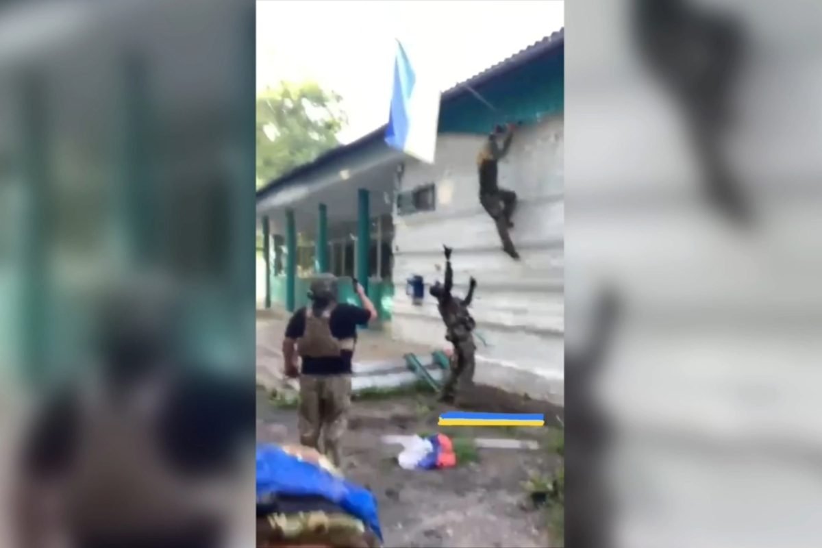 Otro video geolocalizado por CNN este domingo, muestra a soldados ucranianos de pie sobre una bandera rusa frente al edificio del club del pueblo de Guevo, también en el distrito de Sudzhansky de la región rusa de Kursk. Se ve a un soldado ucraniano —enfundado por otro soldado— subiendo hacia lo alto del edificio, izando una bandera ucraniana.
