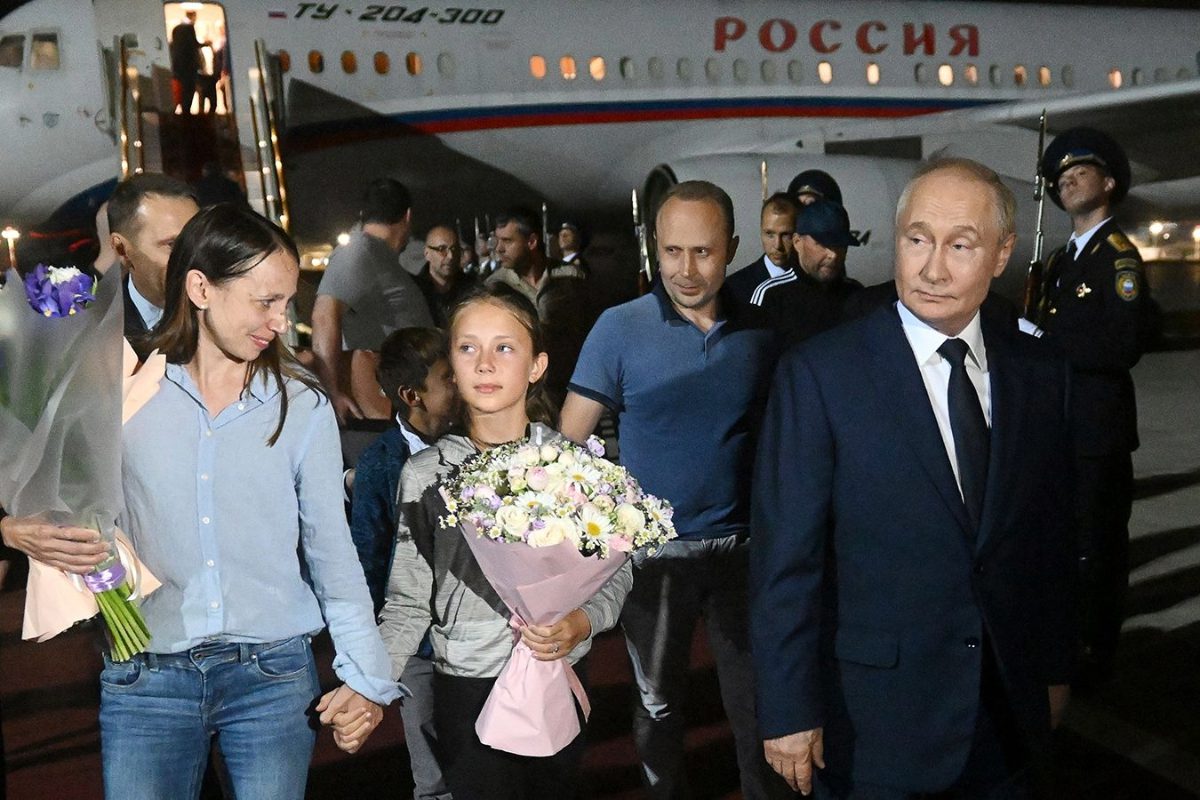 Putin besó a Dultseva en la mejilla y en el hombro, y luego les dio a ella y a su hija ramos de flores. Putin abrazó brevemente a Dultsev también y luego al resto de los rusos liberados, antes de que el grupo caminara por la alfombra roja alejándose del avión.