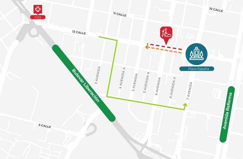 - Reincorporarse por la 7ª avenida hacia la calle Montúfar, a la altura de Plazuela España.