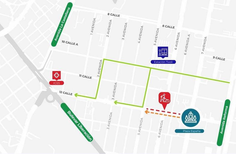 - Recorrido por la calzada Roosevelt, donde se ubicarán varias estaciones.