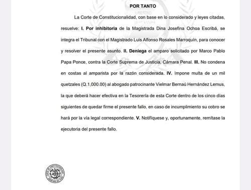 La Corte de Constitucionalidad (CC) ha ratificado la condena de cinco años de prisión contra el exfutbolista Marco Pappa, rechazando un amparo presentado por su defensa. Pappa, quien ha sido condenado en tres ocasiones por violencia contra la mujer, podría regresar a la cárcel tras esta decisión.
