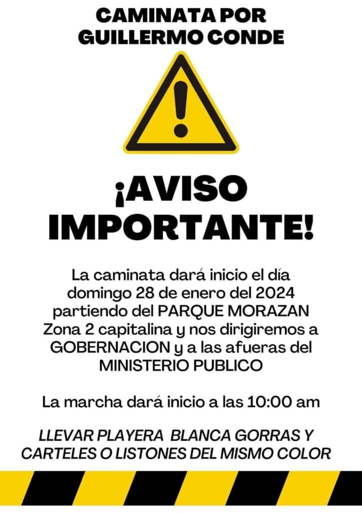 Familiares y amigos de Guillermo Marroquín Conde, uno de los cinco hombres desaparecidos desde el 6 de enero tras salir de un centro nocturno en la zona 9, han recurrido a las redes sociales para convocar a una manifestación pacífica. La actividad, programada para el domingo 28 de enero a las 10:00 horas, tiene como objetivo principal instar a las autoridades a continuar con la búsqueda del joven corredor de motocicletas.