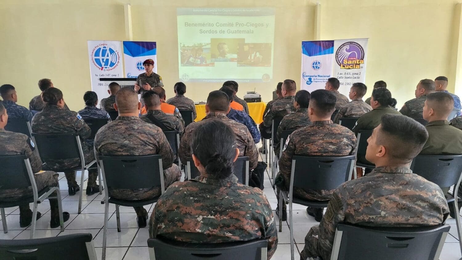 Personal especializado del Benemérito Comité Pro-Ciegos y Sordos de Guatemala imparte el Curso Técnico Nivel Básico en Salud Visual y Auditiva, con enfoque de inclusión y de Derechos Humanos dirigido a un grupo de especialistas de diferentes comandos del Ejército de Guatemala.