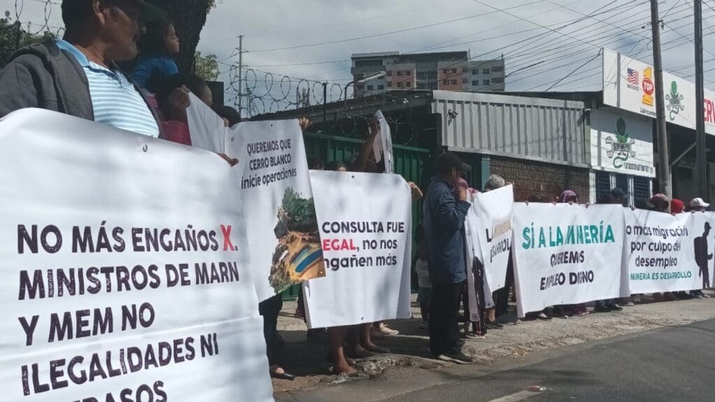 Ayer luego de realizar una manifestación en la entrada principal de la sede del Ministerio de Energía y Minas (MEM), representantes de la asociación civil de originarios y vecinos del área de impacto de la Mina Cerro Blanco, ubicada en Asunción Mita, Jutiapa, Mitavanza, recibieron de las autoridades el ofrecimiento de ser integrados a un proceso de Mesas Técnicas o Multinstitucionales, la realización de una visita de campo a la región y gestionar una entrevista solicitada por los requirentes con el Ministro, Víctor Hugo Ventura Ruíz.