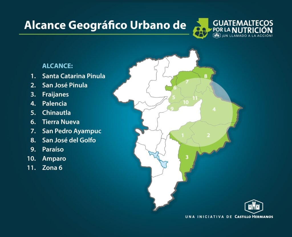 Guatemaltecos por la Nutrición establecerá dos sedes operativas: una en Zona 17 y otra en Santa Catarina Pinula. Desde estas ubicaciones se coordinarán las acciones en los municipios afectados. El programa ofrecerá una amplia gama de servicios, incluyendo evaluaciones médicas y nutricionales, monitoreo del crecimiento infantil, visitas domiciliarias, suplementación, desparasitación, exámenes de laboratorio, y talleres de capacitación en nutrición y finanzas.