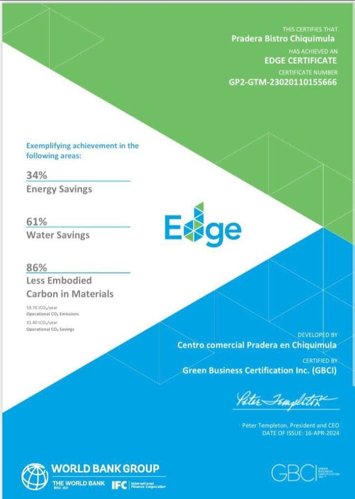 Pradera Bistro Chiquimula obtiene certificación EDGE