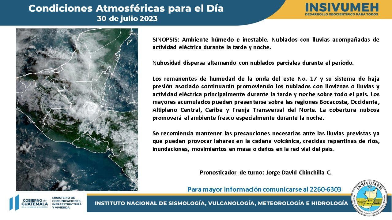 En las primeras horas del día domingo 30 de Julio, el pronosticador de turno Jorge Chinchilla del Instituto Nacional de Sismología, Vulcanología, Meteorología e Hidrología, INSIVUMEH,...