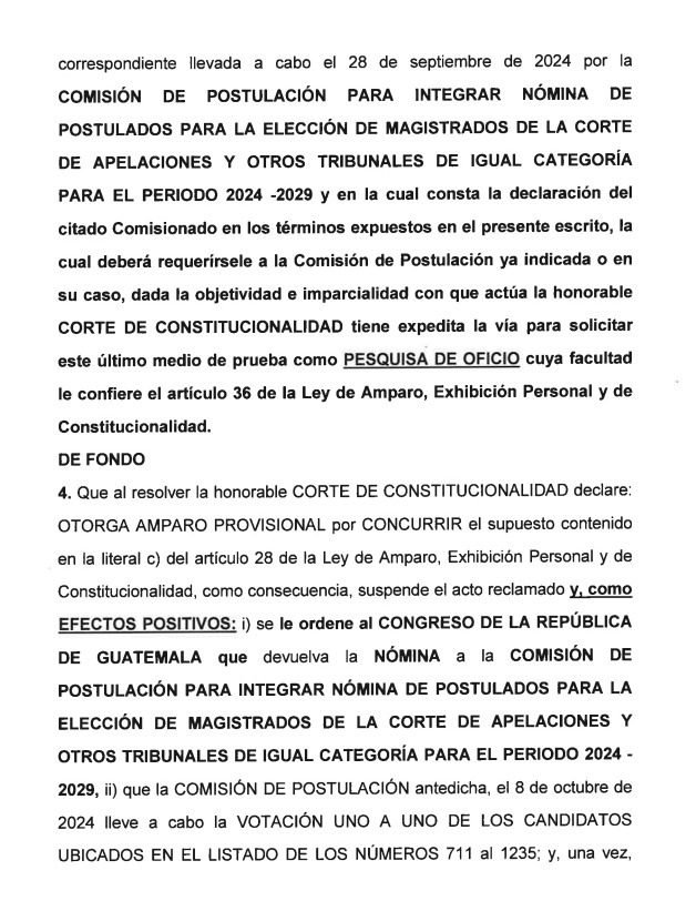 El amparo, interpuesto el lunes 7 de octubre, se enfoca en la necesidad de repetir la votación para garantizar que los aspirantes sean seleccionados de manera individual y no por bloques, tal como denunció el comisionado Carlos Humberto Rivera Carrillo.
