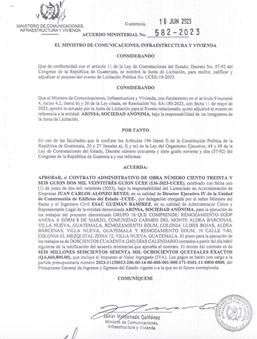 Autoridades gubernamentales han interpuesto una denuncia contra la empresa Ariansa, S.A., tras detectar irregularidades en el cumplimiento de contratos para la remodelación de siete escuelas. En el año 2023, el Ministerio de Comunicaciones otorgó tres eventos a esta compañía por un total de Q16 millones, destinados al remozamiento de instituciones educativas en distintas zonas del país.