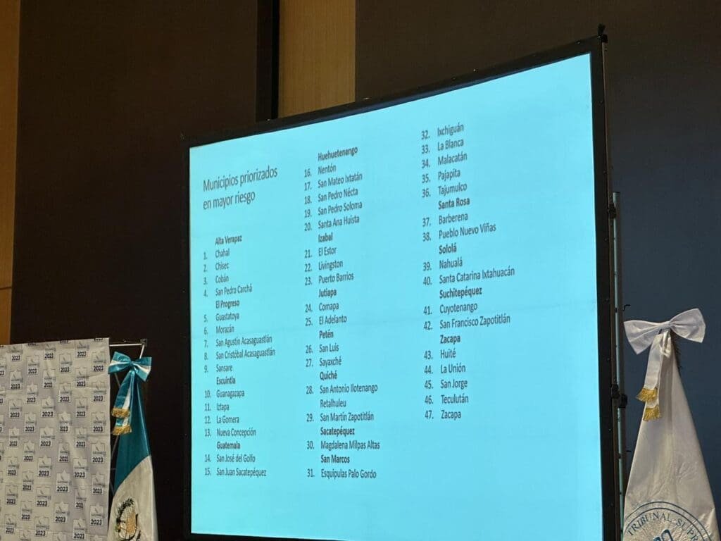 La magistrada del Tribunal Supremo Electoral (TSE), Blanca Alfaro, explicó que los municipios con riesgo alto se reconocen con este tipo de conflictividad por diversos factores propios de las elecciones. Se consideran temas sociales como minera, hidroeléctricas, acceso al agua, conflictos territoriales, entre otros.