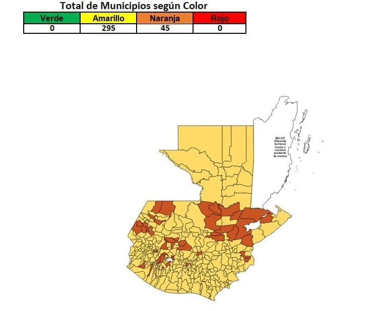 El Ministerio de Salud Pública y Asistencia Social (MSPAS) de Guatemala ha emitido una actualización del Semáforo de Alertas Sanitarias para Covid-19, el sábado 14 de octubre. Este informe, que evalúa el comportamiento de la pandemia en los últimos 14 días, revela que un total de 45 localidades se encuentran actualmente en alerta naranja.