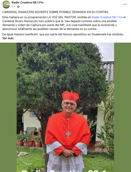 El cardenal Álvaro Ramazzini informó el jueves 30 de noviembre sobre la circulación de rumores acerca de una posible orden de captura en su contra. Según relató el religioso, un miembro de los 48 Cantones de Totonicapán expresó su solidaridad ante esta situación, aunque hasta el momento no ha recibido notificación oficial al respecto.