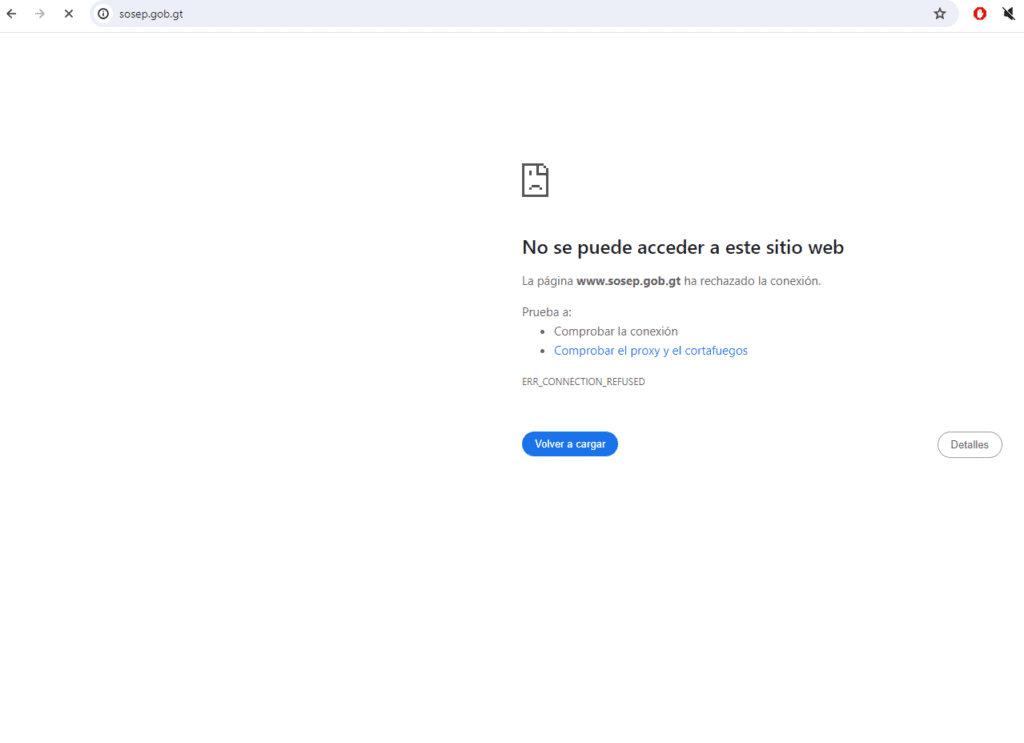 Varios sitios web gubernamentales en Guatemala, incluyendo el del Ministerio de Finanzas Públicas, el Sistema de Contabilidad Integrada, y Guatecompras, han experimentado interrupciones de acceso desde el lunes 27 de noviembre. Esta información fue confirmada por el Ministerio de Finanzas Públicas (Minfin) a través de un comunicado publicado en sus redes sociales.