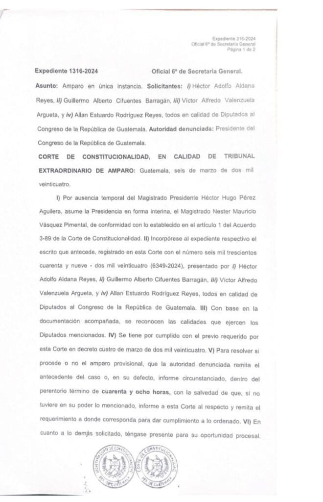 La Corte de Constitucionalidad (CC) ha puesto su atención en la recién constituida Comisión para la Ley de Competencia, presidida por el diputado Samuel Pérez, solicitando un informe detallado al presidente del Congreso, Nery Ramos, en un plazo de 48 horas. Este requerimiento surge después de que la bancada Vamos interpusiera un amparo contra el Acuerdo de la presidencia del Congreso, que designó a Pérez como líder de la comisión.