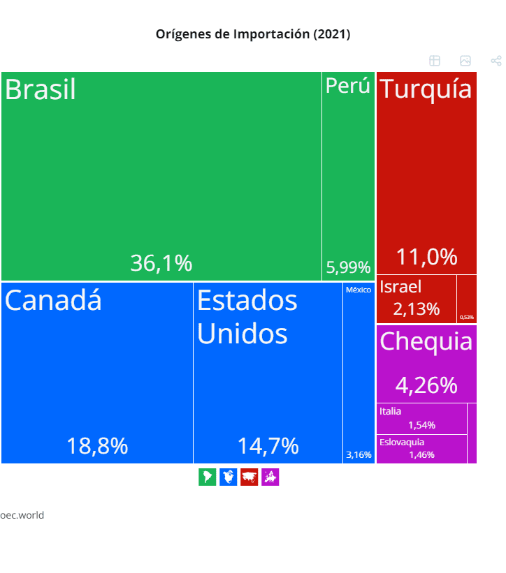 Turquía ($464M), Italia ($422M), Brasil ($220M), Estados Unidos ($132M) y Alemania ($128M).