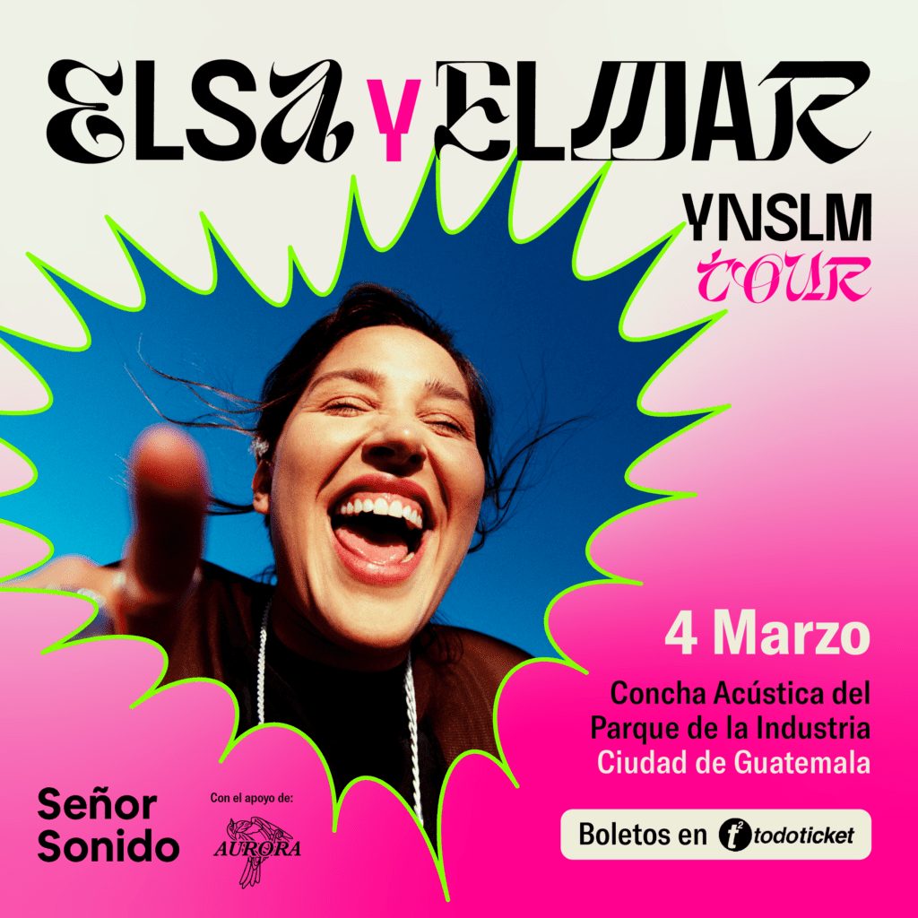 En la Concha Acústica del Parque de la Industria se presentará, por primera vez en Guatemala, la cantautora colombiana Elsa y Elmar como parte del “YYNSLM TOUR”, mismo que utiliza para presentar su más reciente producción discográfica: “Ya no somos los mismos“.