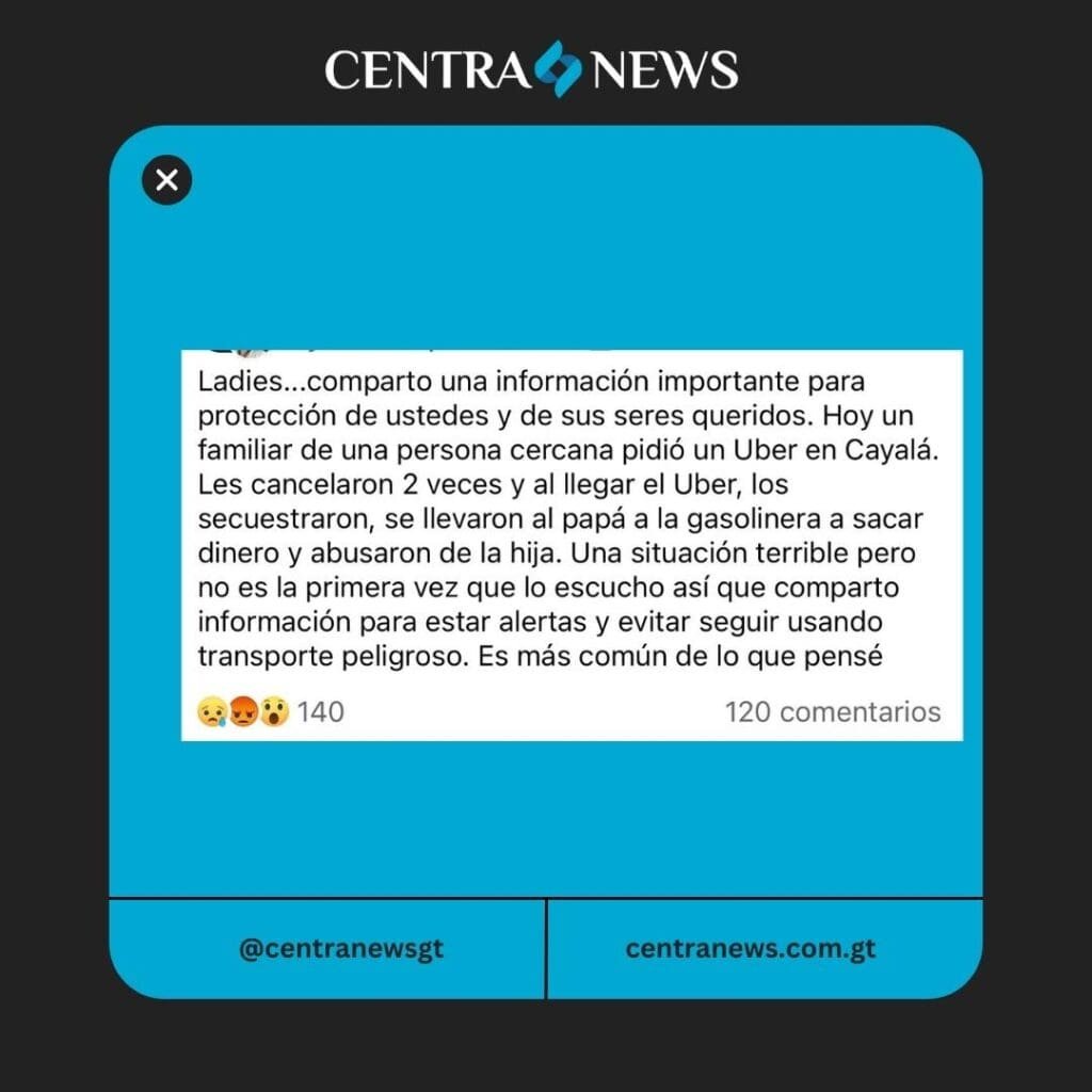Usuario de Facebook, reporta que una familia fue “secuestrada” tras pedir un Uber en Cayalá