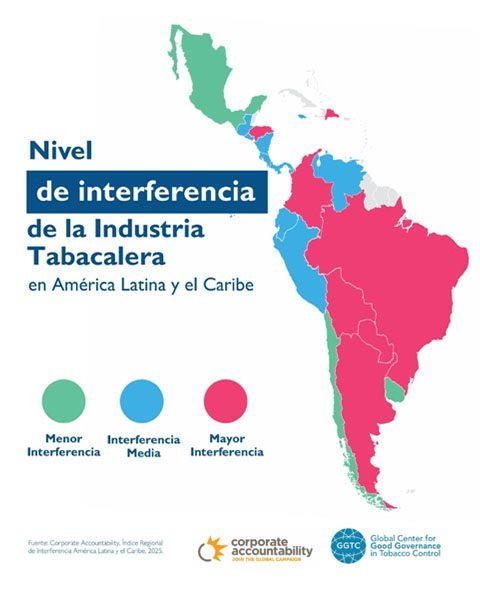 El índice, que evalúa la aplicación del Artículo 5.3 del Convenio Marco para el Control del Tabaco (CMCT) de la OMS, muestra una tendencia desigual en Latinoamérica. Países como República Dominicana, Colombia, Paraguay, Bolivia, Argentina, Honduras, El Salvador, Ecuador, Brasil y Costa Rica también retrocedieron, mientras que México, Uruguay, Chile, Panamá, Venezuela y Perú lograron avances gracias a medidas de transparencia y limitación de contactos con la industria.