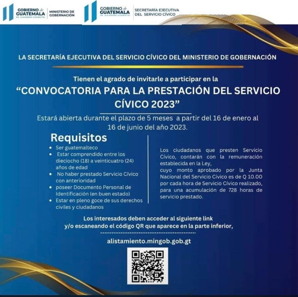La convocatoria para inscripción se encuentra abierta y los guatemaltecos entre 18 a 24 años pueden aplicar, siempre y cuando no hayan participado en estas acciones con anterioridad. Otros requisitos son: