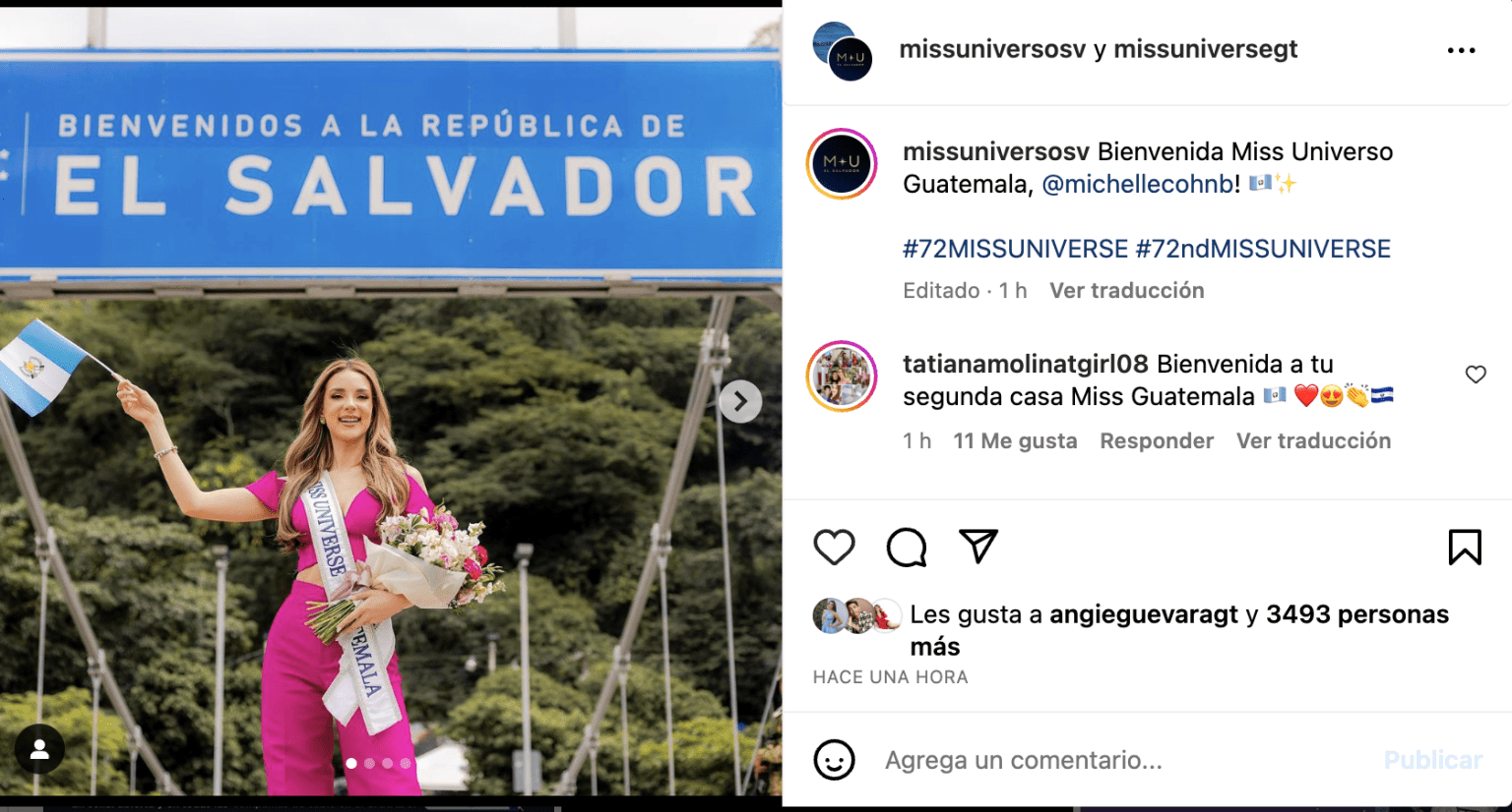 Originalmente, se había planeado que Michelle viajara en avión, pero debido a las condiciones climáticas adversas en Guatemala, tuvo que cambiar sus planes y optar por una travesía por carretera. A su llegada a El Salvador, la joven lucía un elegante conjunto fucsia, con su cabello suelto, y se mostró emocionada al cruzar la frontera y posar junto al cartel de bienvenida del país vecino.