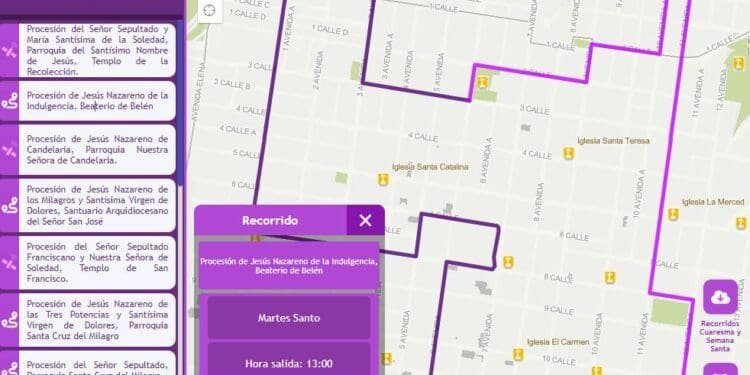 A través de la aplicación los usuarios pueden conocer los recorridos de las procesiones que durante la Semana Mayor pasarán por las calles y avenidas de la ciudad capital.