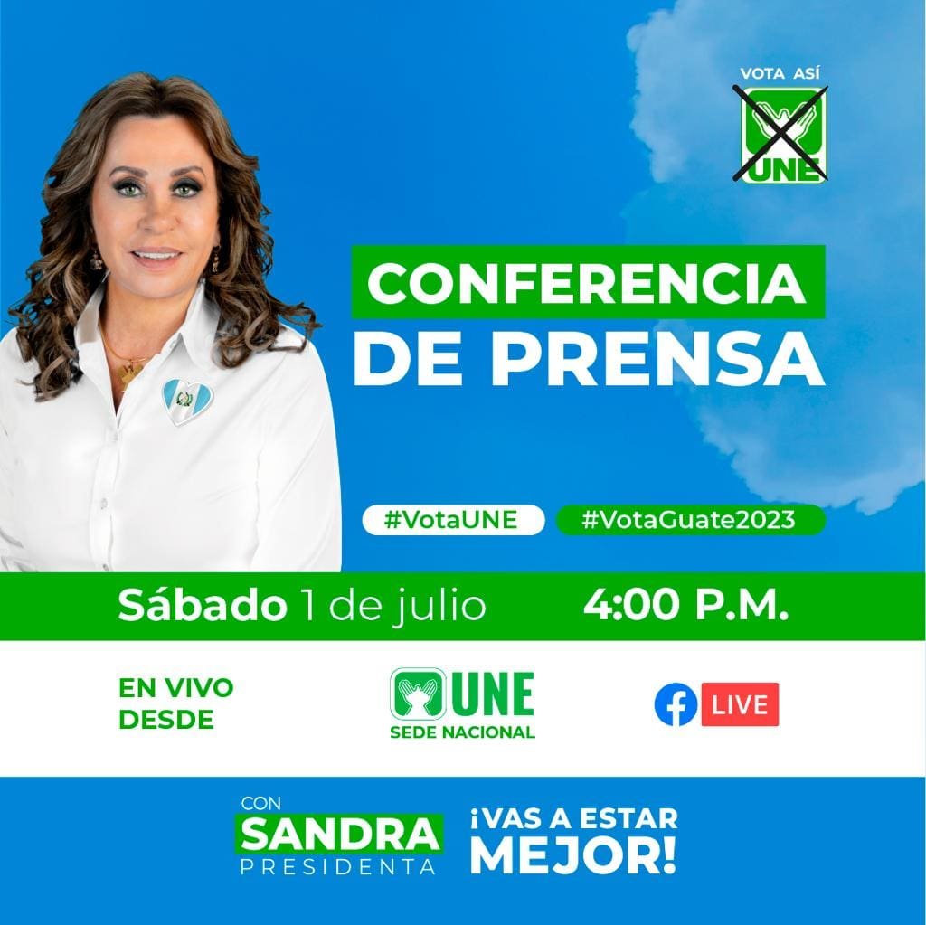 Sandra Torres, presidenciable del Partido Nacional de la Esperanza, UNE, en conferencia de prensa de manera presencial desde la sede nacional del partido UNE y a través de Facebook, pidio al TSE que aclaren las inconsistencias que ya se han denunciado.