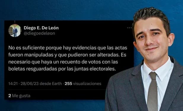 Diego Eduardo de León Barrios, es cuestionado en las redes sociales por haber sido beneficiado y cobijado por la sombra de lo que en el pasado reciente señaló públicamente, cuando se presentaba como un acérrimo crítico y opositor de Semilla y del proceso electoral que, con base a investigaciones del Ministerio Público (MP) y Fiscalía General de la República (FGR) destacó por “severas irregularidades, anomalías y posibles ilegalidades”.
