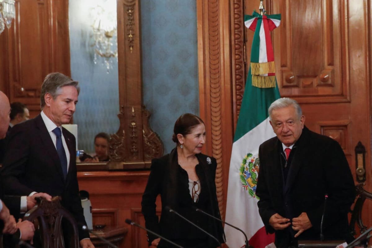 El presidente mexicano Andrés Manuel López Obrador (AMLO) y una delegación de funcionarios estadounidenses liderada por el secretario de Estado, Antony Blinken, y el de Seguridad...