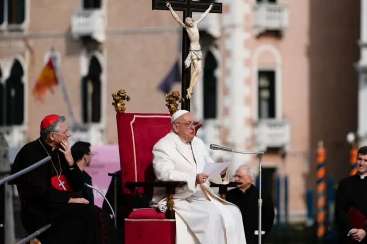 El papa Francisco, de 87 años, llegó este domingo a Venecia, que acoge su primer viaje fuera de Roma en siete meses. El helicóptero del pontífice...