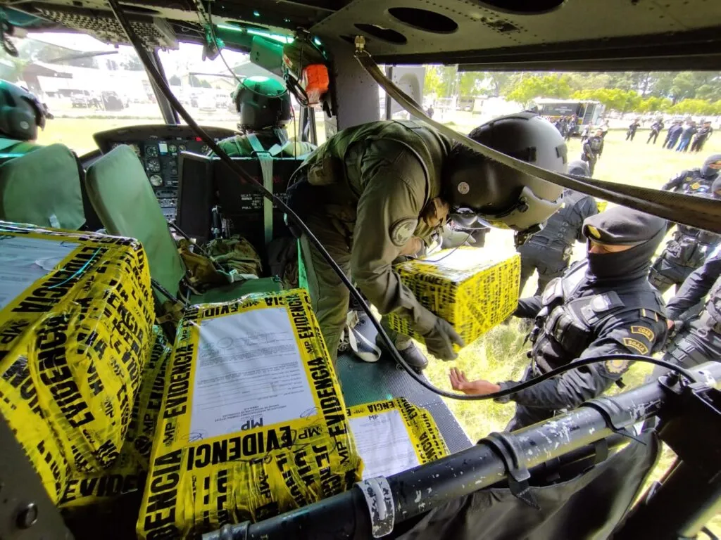 Agentes de la Subdirección General de Análisis de Información Antinarcótica (SGAIA) de la Policía Nacional Civil junto a la Fiscalía de Delitos de Narcoactividad a través de...