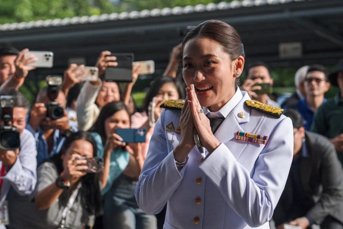 Paetongtarn se arrodilló y rindió homenaje a un retrato del rey, antes de pronunciar un breve discurso de agradecimiento. “Este es el mayor honor y orgullo...
