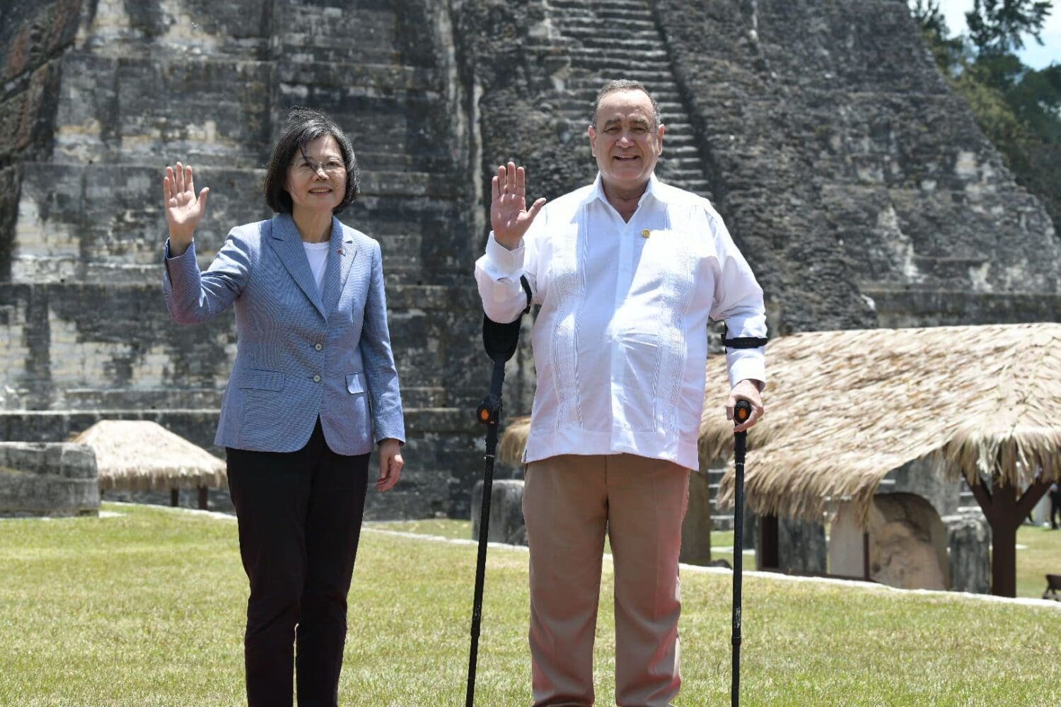 La presidenta de Taiwán, Tsai Ing-wen, y su par de Guatemala, Alejandro Giammattei, se estrecharon las manos el sábado frente a un antiguo templo maya, como...