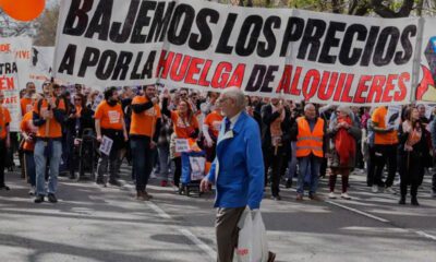 Los manifestantes marcharon contra el "negocio" de la vivienda y exigir la bajada del precio de unos alquileres que denuncian cada vez son más altos e...