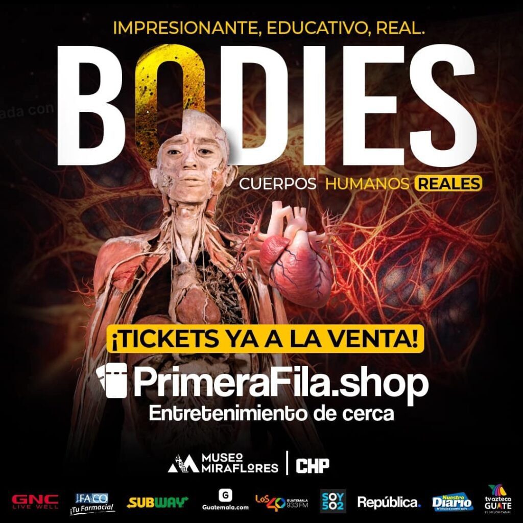 La Exposición Bodies llegará al Museo Miraflores en Guatemala del 4 al 27 de abril, presentando cuerpos reales preservados mediante plastinación para mostrar el funcionamiento del cuerpo humano.
